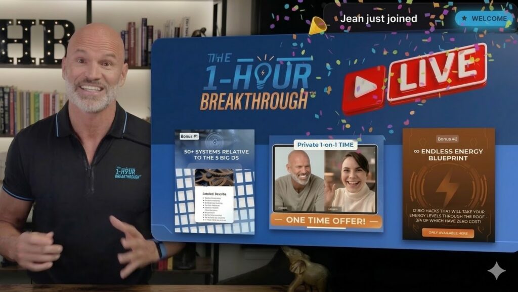Enter your name and email below to get instant access to The 1-Hour Breakthrough, the proven system that helps solopreneurs shatter the 6-figure ceiling without burning out.